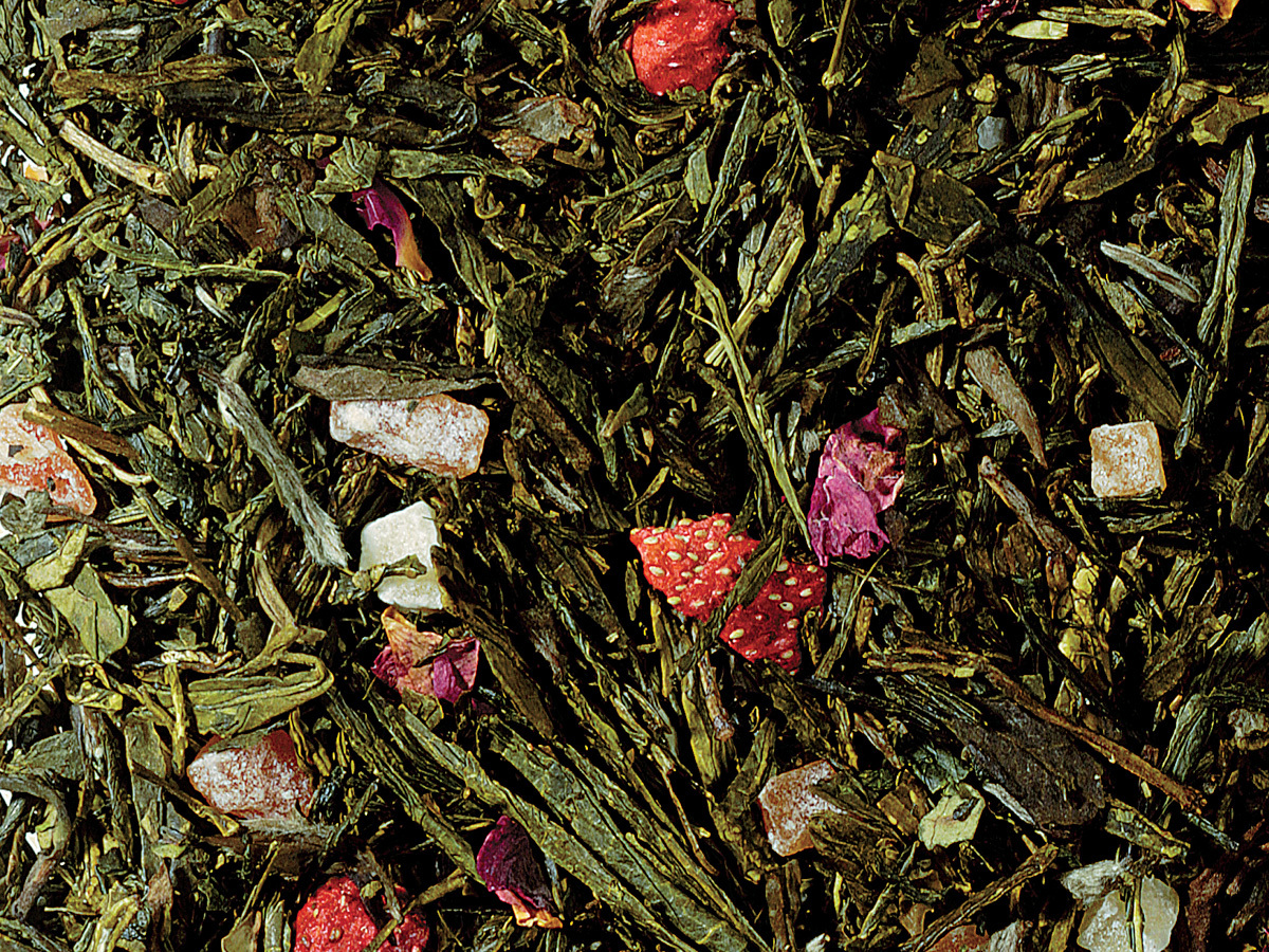 Ainesosat: vihreä tee (56 %) Sencha, Lung Ching (20 %), valkoinen tee (10 %) Pai Mu Tan, papaijakuutiot (papaija, sokeri), ananaskuutiot (ananas, sokeri), aromi, ruusun terälehdet, pakastekuivatut mansikanpalat.