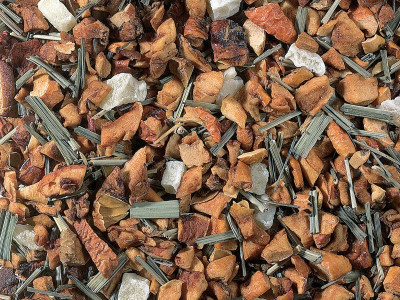 Ainesosat: omenapaloja, ananaksen kuutioita (ananas, sokeri, happamuudensäätöaine: sitruunahappo), aromi, sitruunaruoho.