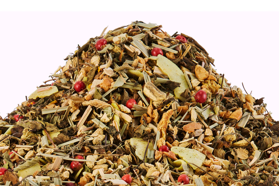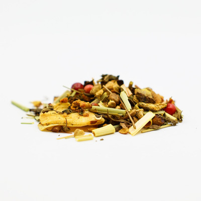 Ainesosat: omenanpalat, inkivääri, sitruunaruoho, ashwagandha (10%), tulsi, kurkumarakeet (8%), sokeroitu ja paahdettu kookoslastu (kookos, sokeri), paahdettua sikurijuurta, sitruunankuoret, punapippuri. luonnollinen banaani aromi.