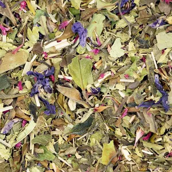 Ainesosat: valkoinen tee, vihreä tee, verbena, sitruunaruoho, aromi, sitruunamyrtti, malvan kukinta, viikunaviipaleet, ruiskaunokin kukat, mustaherukat (1 %), luontainen aromi.