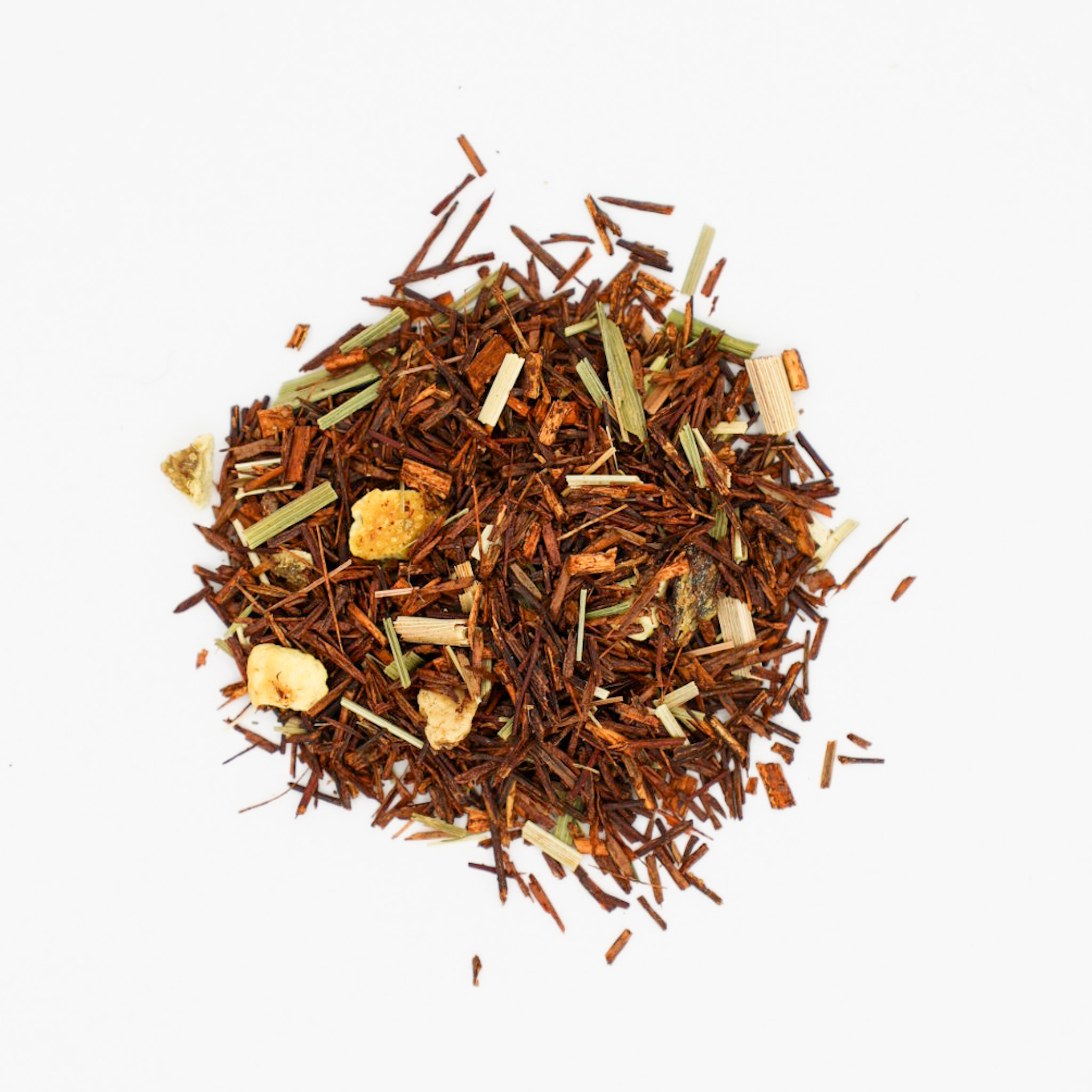 Ainesosat: Rooibos* (suojattu alkuperänimitys)*, sitruunaruoho*, appelsiinin kuoret* (5%), sitruunankuoret* (5%), luontainen appelsiinin aromi, luonnollinen persikka-aromi, sitruunaöljy* (0,5%).