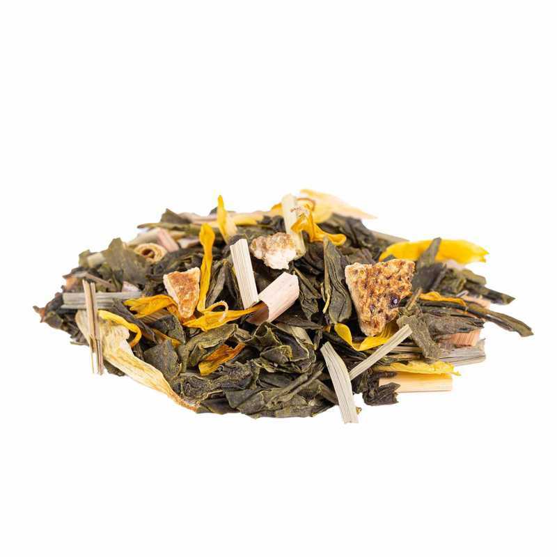 Ainesosat: Vihreä tee Kiinan Sencha, sitruunaruoho, sitruunankuoret, luontainen aromi, piparminttu, kehäkukka.
