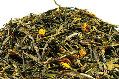 Maustettu vihreä tee sekoitus, jossa on hedelmäinen persikan ja naranquillan maku.