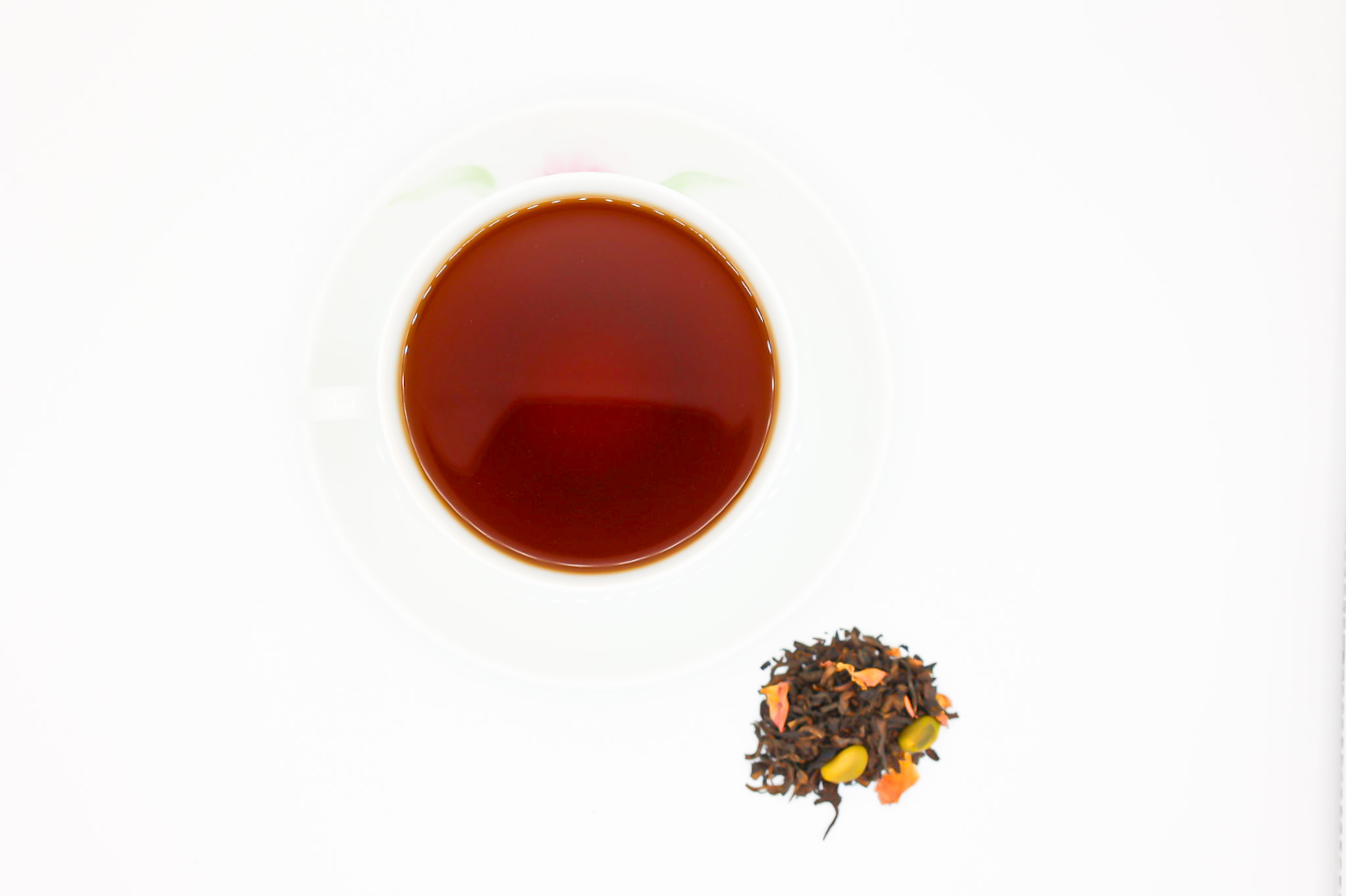 Pehmeä kiinalainen musta Pu erh tee yhdistettynä rapeisiin pistaasi pähkinöihin. Tässä teessä voit aistia itämaisen satumaisia makuvivahteita. Näyttävyyttä teehen lisäävät ruusun terälehdet. Jos et vielä ole tutustunut Pu Erh teehen, tästä on hyvä aloittaa.