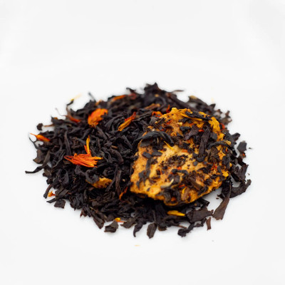 Ainekset: Musta tee Ceylonista, Etelä-Intiasta, Kiinasta, aromi, mansikka (3 %), saflorin terälehdet.