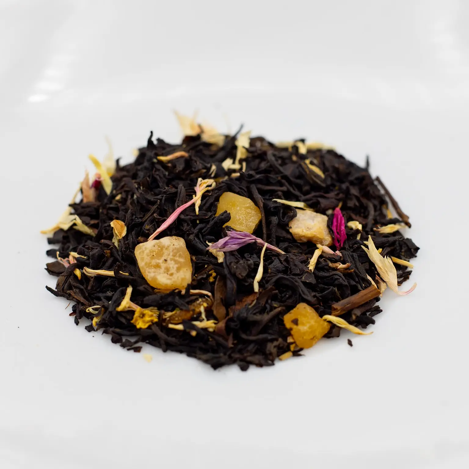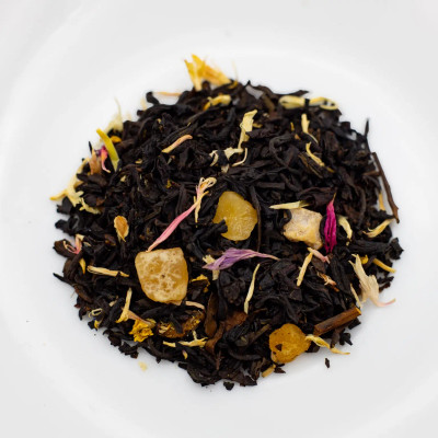 Ainesosat: musta tee, aromi, rikastetut persikkapalat (persikka, riisijauho, säilöntäaine: rikkidioksidi), sokerilla kuorrutetut ananaspalat (ananas, sokeri, happamuudensäätöaine: sitruunahappo), sokerilla kuorrutetut mangopalat (mango, sokeri, happamuudensäätöaine: sitruunahappo), sokerilla kuorrutetut cantaloupemelonin palat (cantaloupemeloni, sokeri, happamuudensäätöaine: sitruunahappo), ruiskukan kukka, seljankukka.